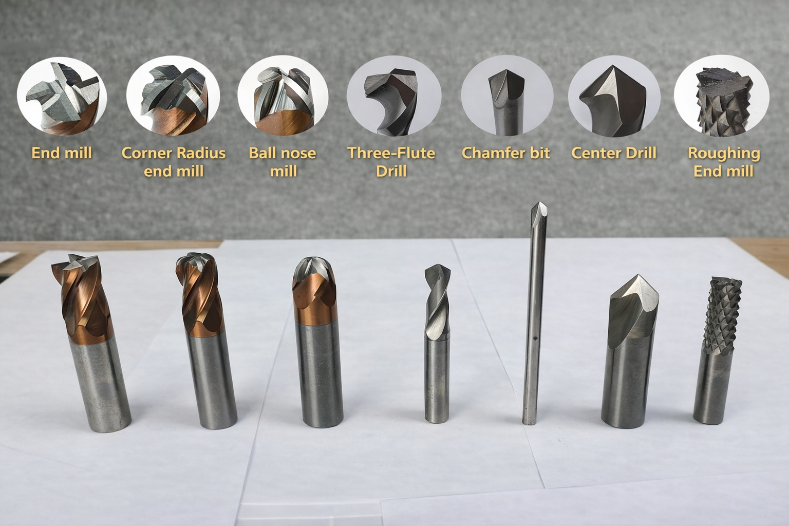 Here is the tools picture which ZD-X20 Automatic tool and cutter grinder can do grinding .